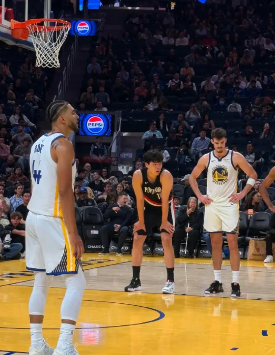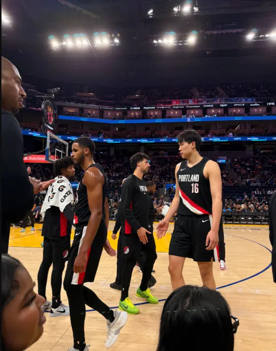 杨瀚森在上线持球,他看到防守他的是老将或霍福德。